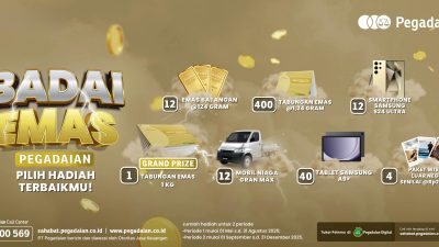 LINTAS24NEWS.com – PT Pegadaian kembali menunjukkan komitmennya dalam mengapresiasi nasabah setia melalui peluncuran program undian berhadiah bertajuk “Badai Emas Pegadaian 2025”.