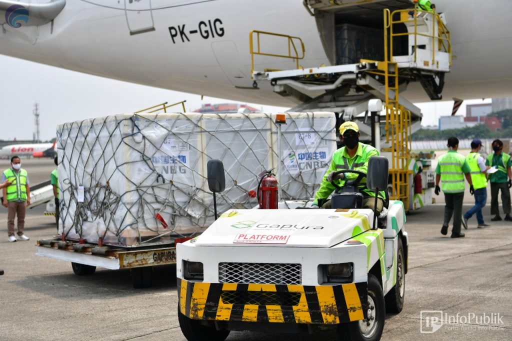 LINTAS24NEWS.com – Indonesia kembali menerima kedatangan vaksin Covid-19 sejumlah 6.000.000 (enam juta) dosis dalam bentuk bahan baku (bulk) dari Sinovac Biotech Ltd, dan 482.400 dosis dalam bentuk jadi (vial) dari Sinopharm China National Pharmaceutical Group.