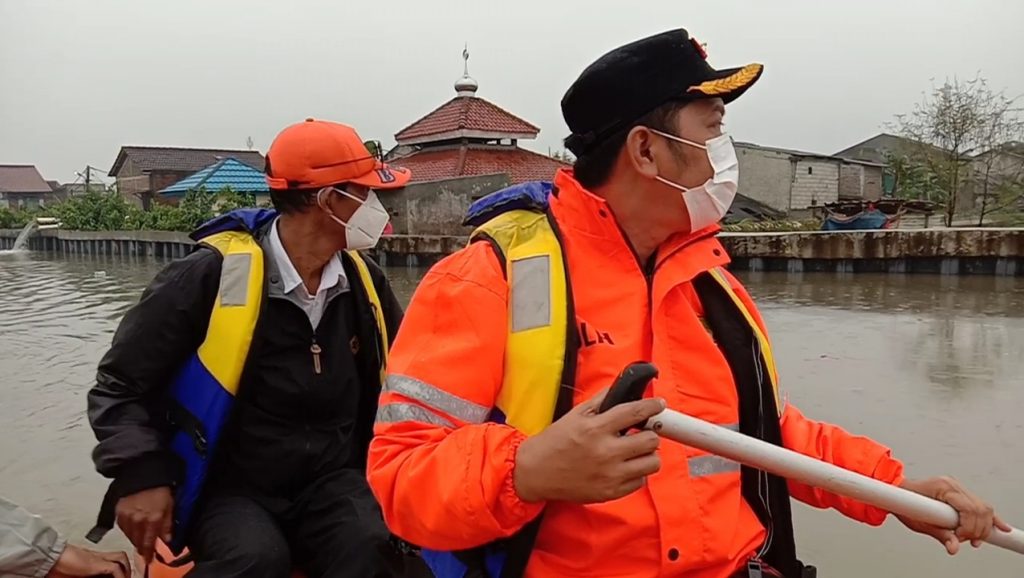 LINTAS24NEWS.com – Camat Periuk Maryono bersama Kepala UPT BPBD Damkar Periuk Syahrial, meninjau genangan air di Jembatan Alamanda. Jalan Raya Regenci, Kelurahan Gebang Raya Kecamatan Periuk Kota Tangerang, Serta berpatroli air menyusuri Sungai Ledug dengan Perahu Boat. Pada Kamis, (18/2/2021).