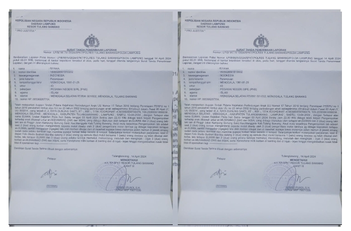 Pelaku Kekerasan MZ Anak Dibawah Umur di Tulang Bawang Ditetapkan Tersangka