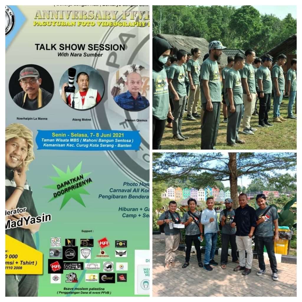 LINTAS24NEWS.com – Paguyuban Foto Videografi Banten (PFVB) merayakan Anniversary ke 8 yang diadakan di taman wisata Mahoni Bangun Sentosa (MBS) Kemanisan, Kecamatan Curug, Kota Serang-Banten. Berlangsung Senin – Selasa (7-8/6/2021).