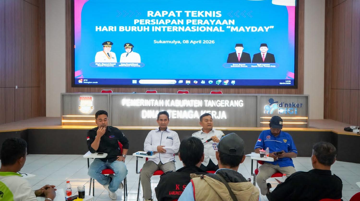 LINTAS24NEWS.COM — Dinas Tenaga Kerja Kabupaten Tangerang resmi membentuk panitia pelaksana peringatan Hari Buruh Internasional (May Day) 2026, dengan Ajat Sudrajat terpilih sebagai ketua. Penetapan tersebut dilakukan dalam rapat teknis yang digelar di Aula Disnaker, Rabu (8/4/2026).