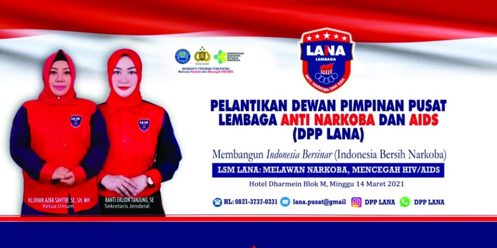 LINTAS24NEWS.COM – Dewan Pimpinan Pusat (DPP) Lembaga Anti Narkoba dan AIDS (LANA) resmi dilantik dan dinahkodai seorang perempuan.