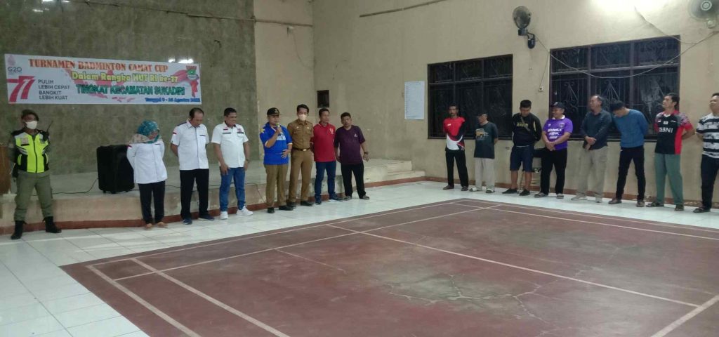 TANGERANG, LINTAS24NEWS.com – Dalam rangka menyambut dan memeriahkan HUT RI ke 77 tahun, Pemerintah Kecamatan Sukadiri menggelar tournamen bulu tangkis Camat Cup 2022 yang digelar di GSG Kecamatan Sukadiri, Kabupaten Tangerang pada Selasa (9/8/2022).