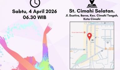 Kegiatan senam sehat ini akan dilaksanakan pada Sabtu, 4 April 2026 mulai pukul 06.30 WIB hingga selesai, bertempat di halaman Stasiun Cimahi Selatan. Masyarakat umum diundang untuk hadir dan berpartisipasi tanpa dipungut biaya, sehingga diharapkan dapat menjadi ajang kebersamaan yang menyehatkan sekaligus menyenangkan.
