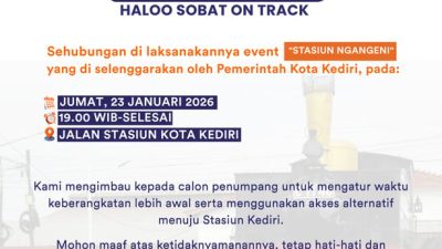 “Kami mengimbau para pelanggan yang akan berangkat dari Stasiun Kediri untuk memperhitungkan waktu perjalanan menuju stasiun dengan lebih awal serta memanfaatkan jalur alternatif guna menghindari potensi kemacetan di sekitar lokasi kegiatan,” ujar Tohari.