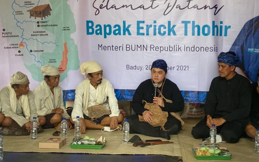 “Jika dilihat, intisari dari Suku Baduy adalah menjaga, melestarikan alam. Tentu ini harus saya wujudkan agar menjaga dan melestarikan alam. Baik itu saya sebagai individu, atau jabatan sebagai Menteri BUMN. Tentu, BUMN harus menjadi perusahaan yang mampu menjaga alam Indonesia,” jelasnya.