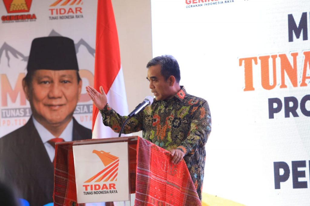 SUMATERA UTARA, LINTAS24NEWS.com – Sekjen Partai Gerindra Ahmad Muzani menghadiri Musyawarah Daerah PD Tunas Indonesia Raya (TIDAR) Sumatera Utara di Parapat, Kabupaten Simalungun, Sumatera Utara pada Sabtu (2/10/2021). Dalam sambutannya, Muzani berbicara mengenai pentingnya regenerasi kepemimpinan dalam upaya menjaga keberlanjutan regenerasi politik.