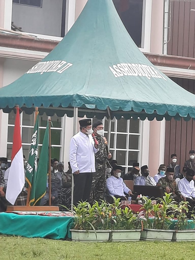 “Harus kembali ke pesantren untuk membangkitkan kembali ghriroh dalam menjaga kedaulatan NKRI. Seperti kita ketahui bersama, hubbul wathan iman yang mampu mengimplementasikannya ya para Santri. Dan itu terbukti sejak zaman Mbah Hasyim Asy’ari mendirikan NU.