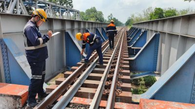 hingga petugas perawatan jalur rel dan jembatan terus bekerja untuk memastikan