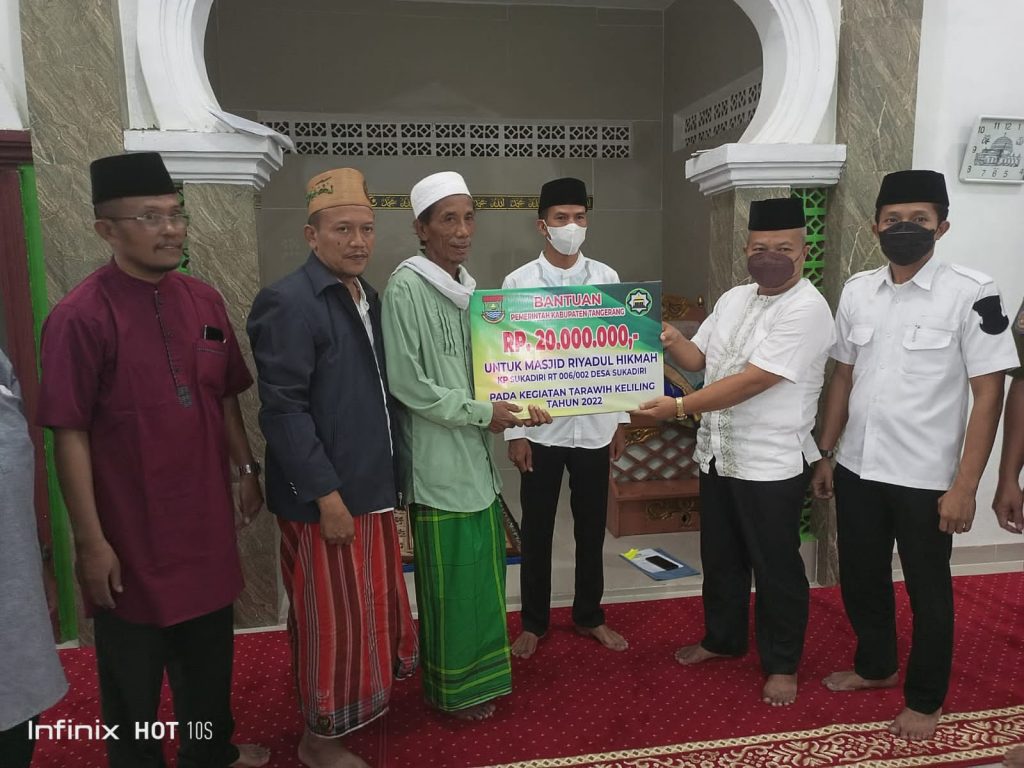 “Dengan tidak mengurangi rasa hormat, saya mewakili Bupati Tangerang menyerahkan bantuan secara simbolis senilai Rp20 juta untuk pembangunan Masjid,” ungkapnya.