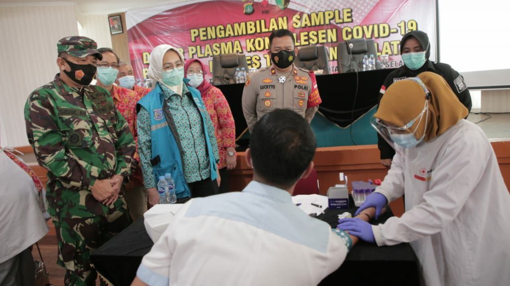 LINTAS24NEWS.COM – Pemerintah Kota Tangerang Selatan menerima donor Plasma Darah dari Polres Kota Tangerang Selatan yang berkerjasama dengan Kodim 0506 Tangerang raya. Plasma darah ini disumbang langsung oleh aparat yang sebelumnya sudah terpapar oleh Covid-19.