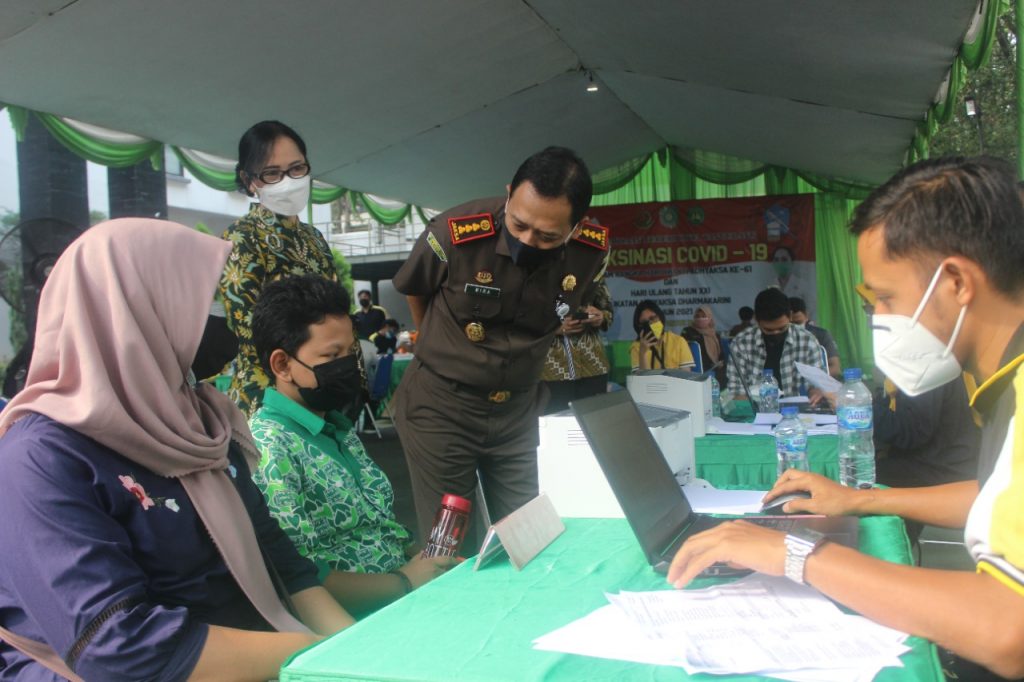 Kajari Kota Tangerang didampingi Ketua IAD Daerah Kota Tangerang setia menunggui dan memantau jalannya proses vaksinasi dari awal sampai dengan berakhirnya kegiatan tersebut.