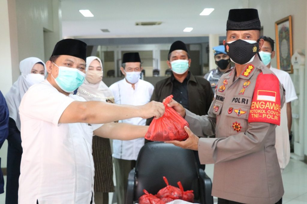 Sementara, melalui Majlis Ulama Indonesia (MUI) Kota Tangerang di serahkan satu ekor sapi yang sudah di potong-potong menjadi 100 kantong daging masing-masing berat 1 kilogram, diantar langsung Kapolres Deonijiu De Fatima ke kantor MUI di Jalan Satria Sudirman, Puspemkot Tangerang.
