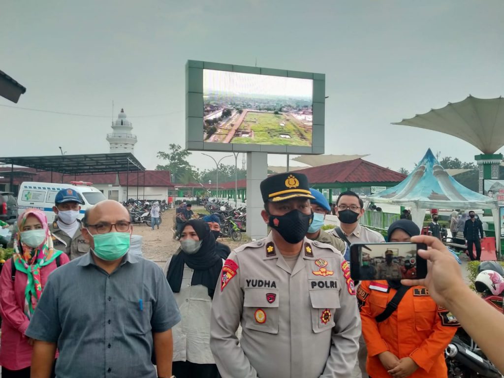 Kapolres Serang Kota AKBP Yunus Hadith Pranoto, S.I.K., M.Si., melalui Kabagops Polres Serang Kota Kompol Yudha Hermawan, S H., M.M., mengatakan, hari ini pengunjung wisata religi kurang lebih ada 500 orang, sebagian dari mereka dilakukan tes swab antigen.
