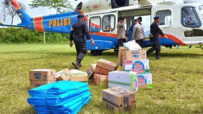 “Hari ini kami kembali memberikan bantuan di desa yang terisolir, belum dapat diakses karena jalan terputus, pemberian bantuan hari ini pun cukup sulit untuk mendaratkan helikopter di sana,” kata Kadiv Humas Polri, Irjen Pol Dedi Prasetyo.