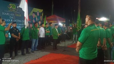 LINTAS24NEWS.com – Partai Persatuan Pembangunan (PPP) rayakan hari lahir (Harlah) Emas yang ke- 50 sekaligus pengukuhan ranting Dapil 3, yang bertempat di rumah makan’Gubug Desa Hatur Nuhun’, tepatnya di Kampung Pisangan Aries, Desa Sarakan, Kecamatan Sepatan, Kabupaten Tangerang, Minggu (29/1/2023) malam.
