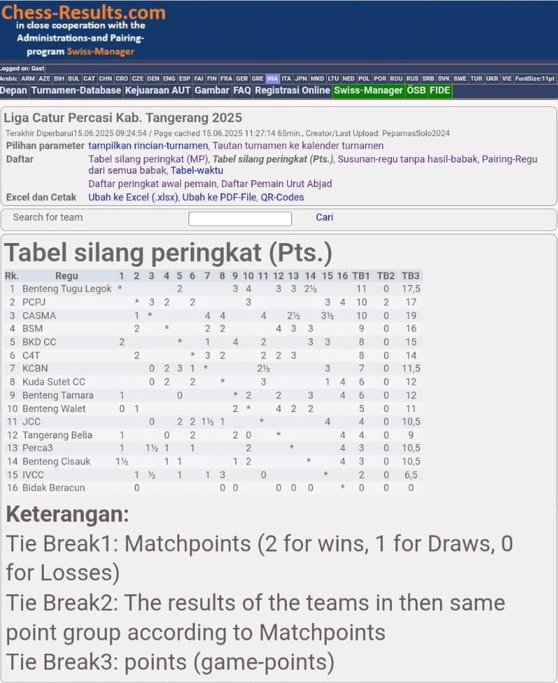 Tabel peringkat Liga Catur Percasi Kabupaten Tangerang hingga putaran ketiga (Foto: Dok. Percasi Kabupaten Tangerang)