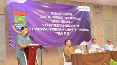 LINTAS24NEWS.com – Sekretaris Daerah (Sekda) Kabupaten Tangerang Moch Maesyal Rasyid membuka kegiatan seleksi pengisian jabatan pimpinan tinggi pratama setara Eselon II b di lingkungan Pemerintah Kabupaten Tangerang melalui sistem Computer Assisted Test (CAT), acara tersebut dilaksanakan di Hotel Lemo Kecamatan Kelapa Dua, Selasa (31/1/2023).