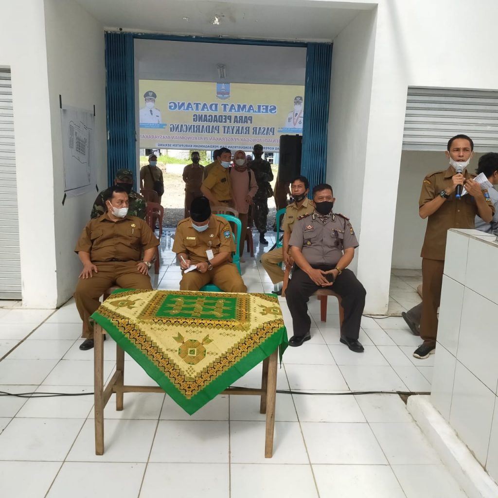 Dalam sambutannya, Kepala UPT Pasar Kabupaten Serang Mahyar Sonjaya, SE., yang mewakili Plt. Kepala Dinas Perindustrian Perdagangan dan Koperasi Kabupaten Serang mengucapkan terimakasih kepada para perwakilan pedagang dan muspika padarincang yang telah hadir.