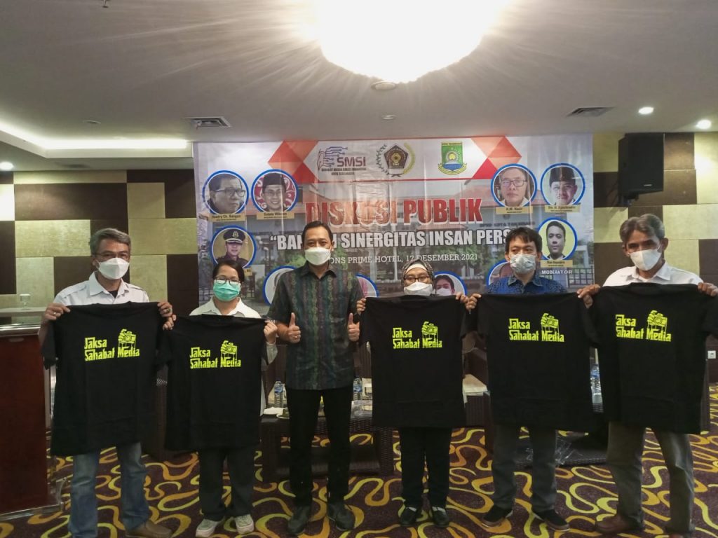Ada yang menarik saat berlangsungnya acara pengukuhan di Pakons Prime Hotel pada Jumat 17 Desember 2021 kemarin, saat Kepala kejaksaan Negeri Kota Tangerang I Dewa Gede Wirajana bersama Kasi Intel R Bayu Probo.S,SH membagikan Baju Kaos berwarna hitam Bertuliskan ‘Jaksa Sahabat Media’ yang diberikan secara simbolik kepada undangan perwakilan organisasi Media yang hadir.