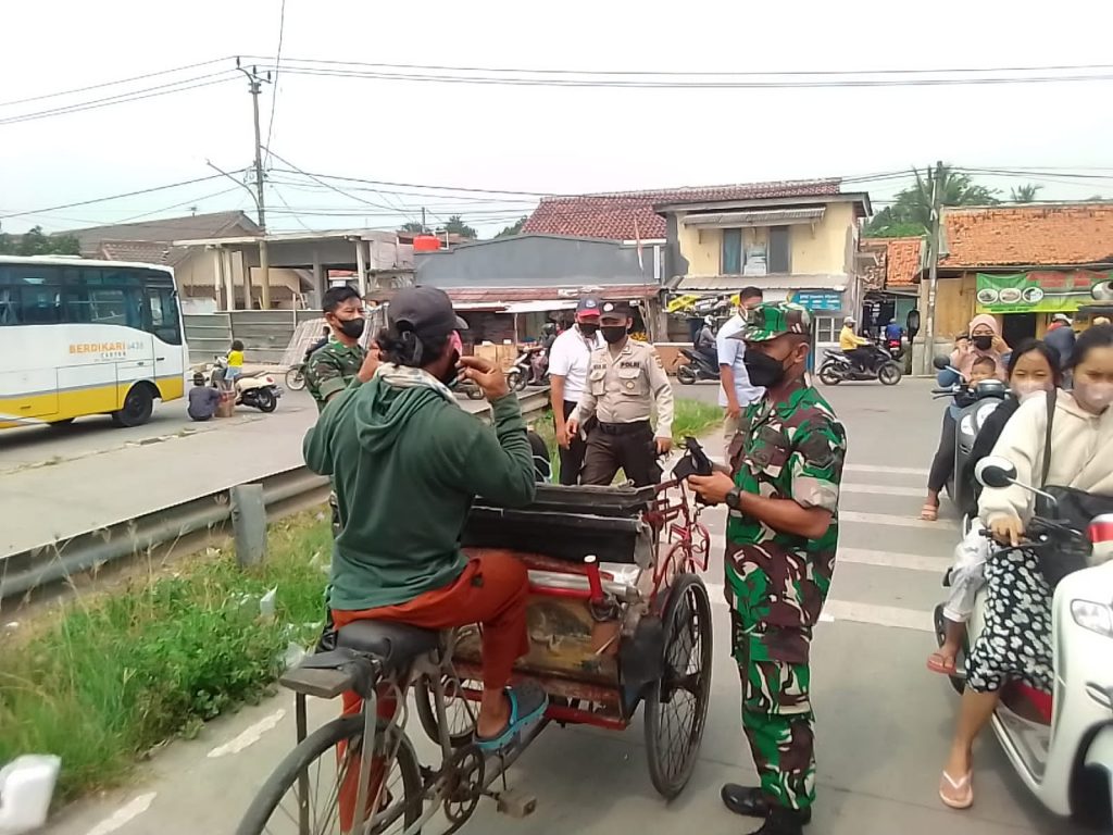 TANGERANG, LINTAS24NEWS.com – Cuaca panas di bulan suci Ramadha tak menyurutkan semangat jajaran tiga pilar Kecamatan Mauk dalam menggencarkan penegakkan prokes dimasa pandemi Covid-19 dengan melakukan bagi-bagi masker di Pasar Tradisional Mauk, Kabupaten Tangerang-Banten, Selasa (5/4/2022).