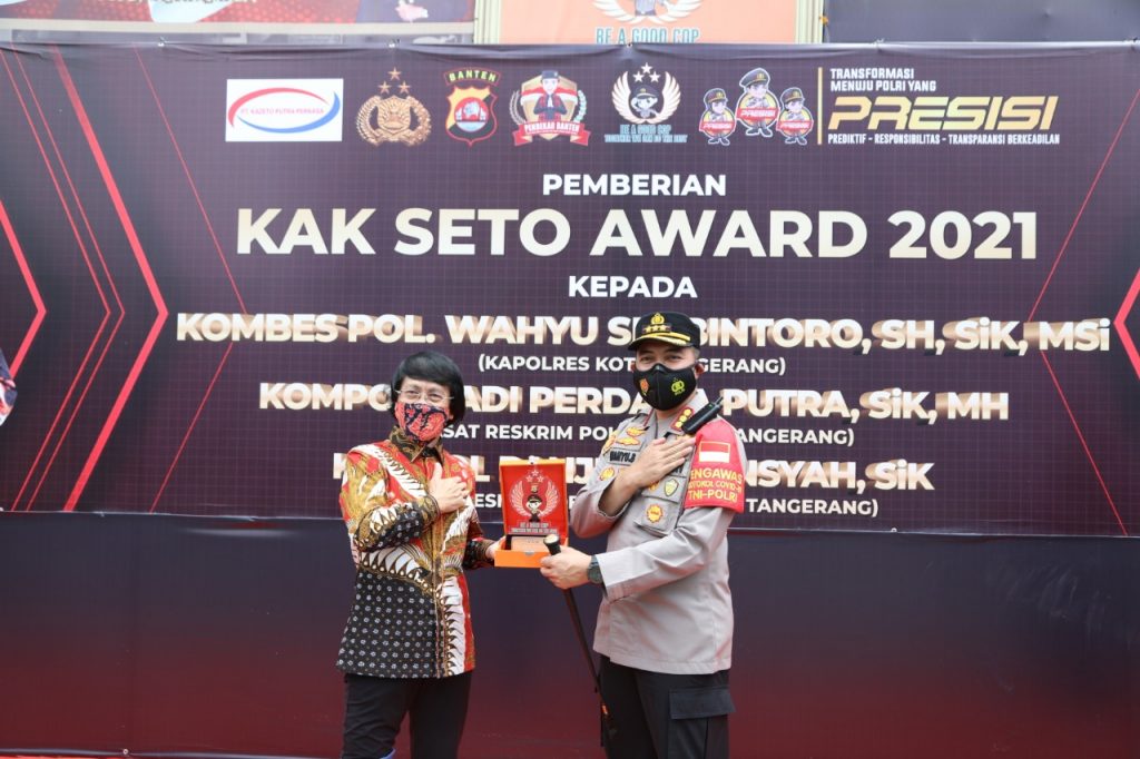 LINTAS24NEWS.COM – Jajaran Polresta Tangerang Polda Banten mendapatkan penghargaan Kak Seto Award, Penghargaan diberikan pada upacara yang dilaksanakan di lapangan Polresta Tangerang. Senin, (8/3/2021).
