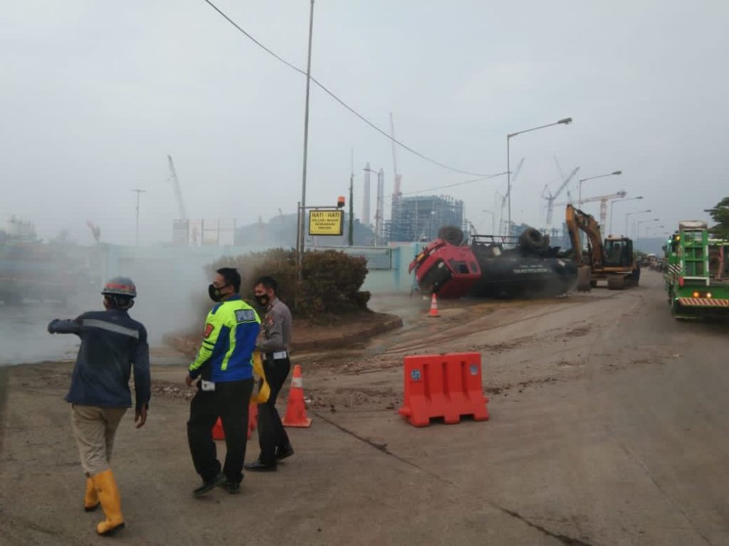 Kasatlantas Polres Cilegon AKP Yusuf Dwi Admojo membenarkan kejadian tersebut. “Benar telah terjadi peristiwa kecelakaan lalu lintas truk tanki membawa muatan Hcl terguling, akibat dari kecelakaan tersebut tidak ada korban jiwa hanya kerugian materi sebesar Rp10.000.000,” kata Yusuf.