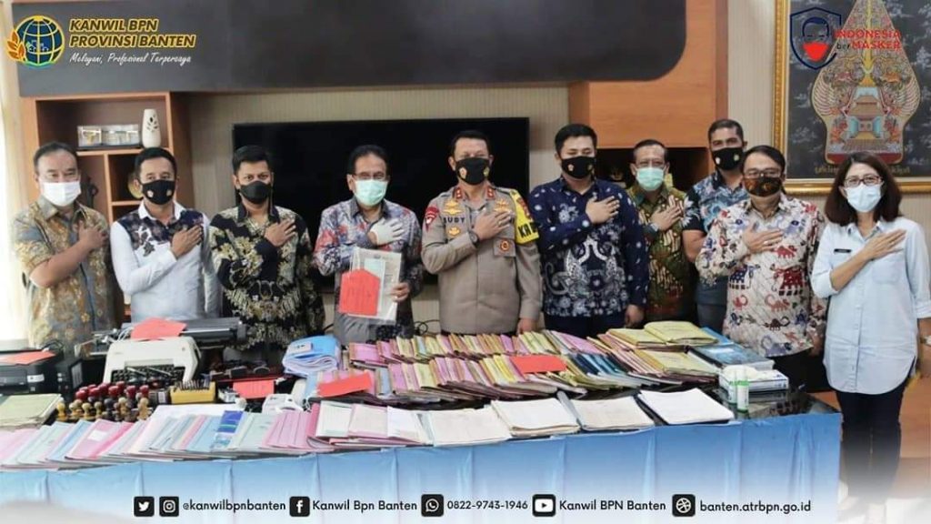 “Saya bersama Satuan Tugas Pemberantasan Mafia Tanah Kementerian ATR/BPN mengapresiasi Kapolda Banten dan jajaran yang telah membongkar kasus pemalsuan girik. Pemalsuan girik adalah salah satu hulu permasalahan pertanahan karena dengan girik palsu orang bisa mendapatkan sertipikat tanah,” tutur Sofyan A Djalil.